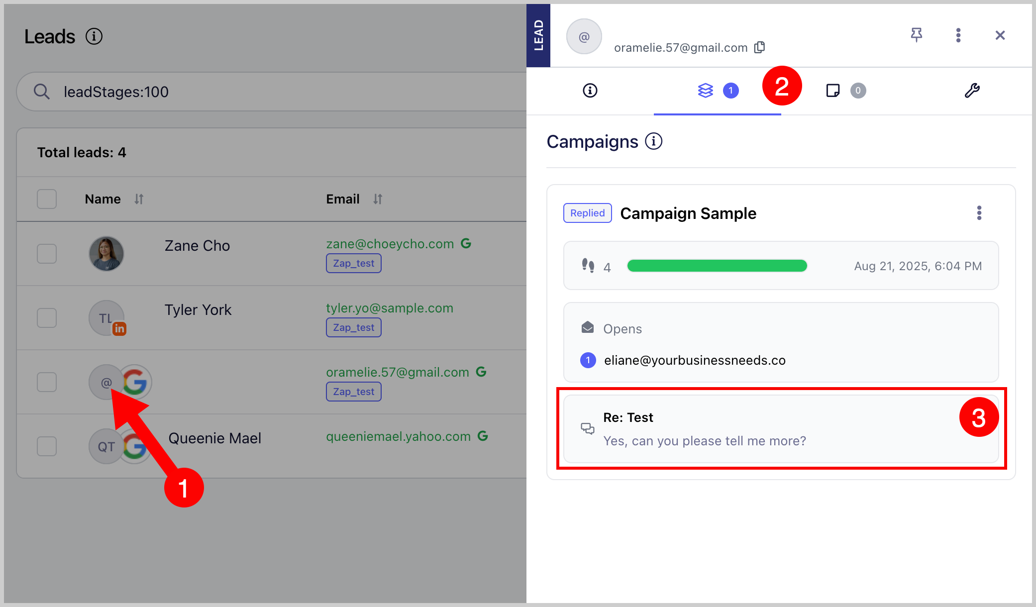 - Linkedin replies (LinkedIn icon in lead's thumbnail)