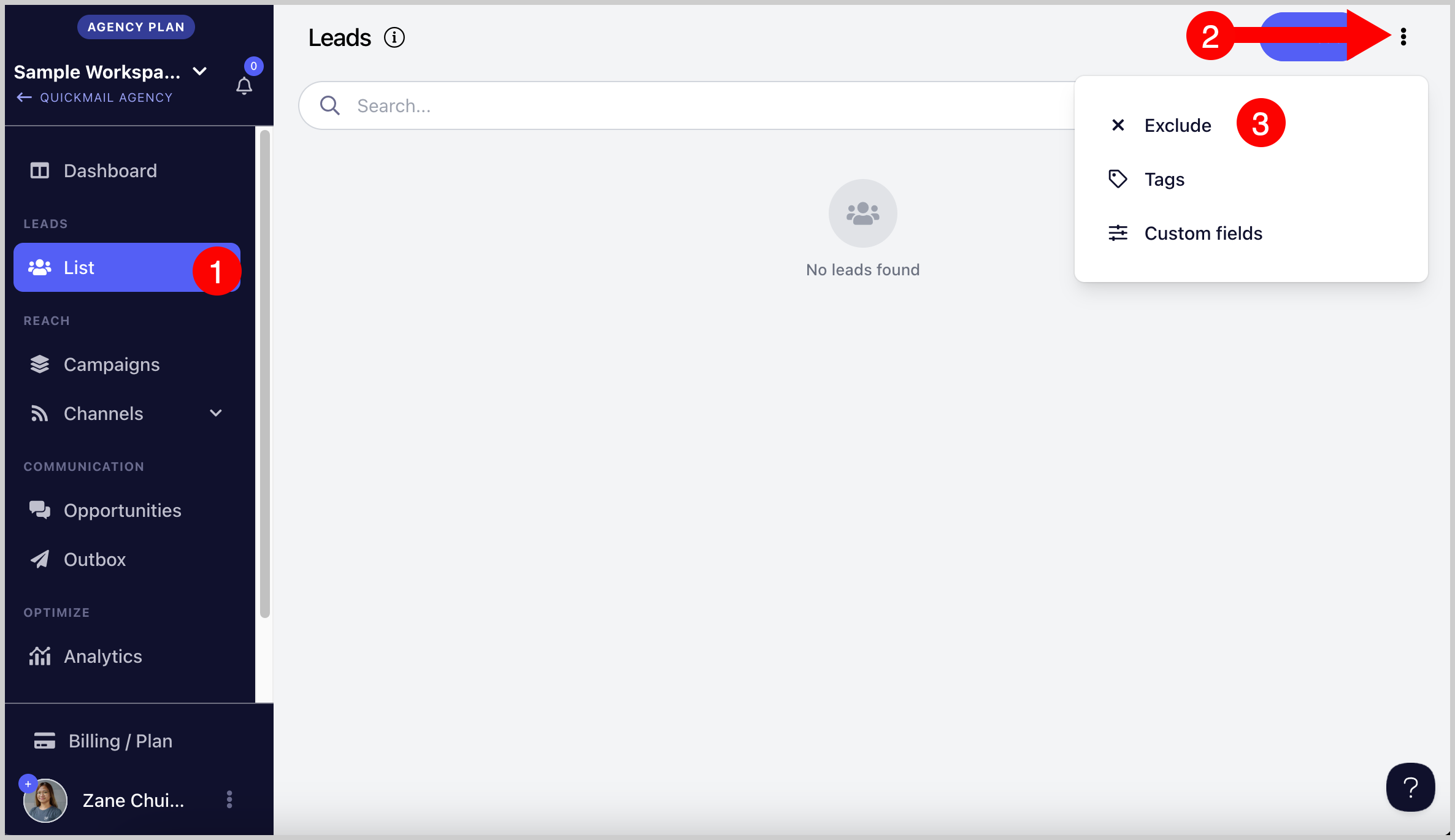 Step 1. Go to your List → click Exclude at the top right side of the page.