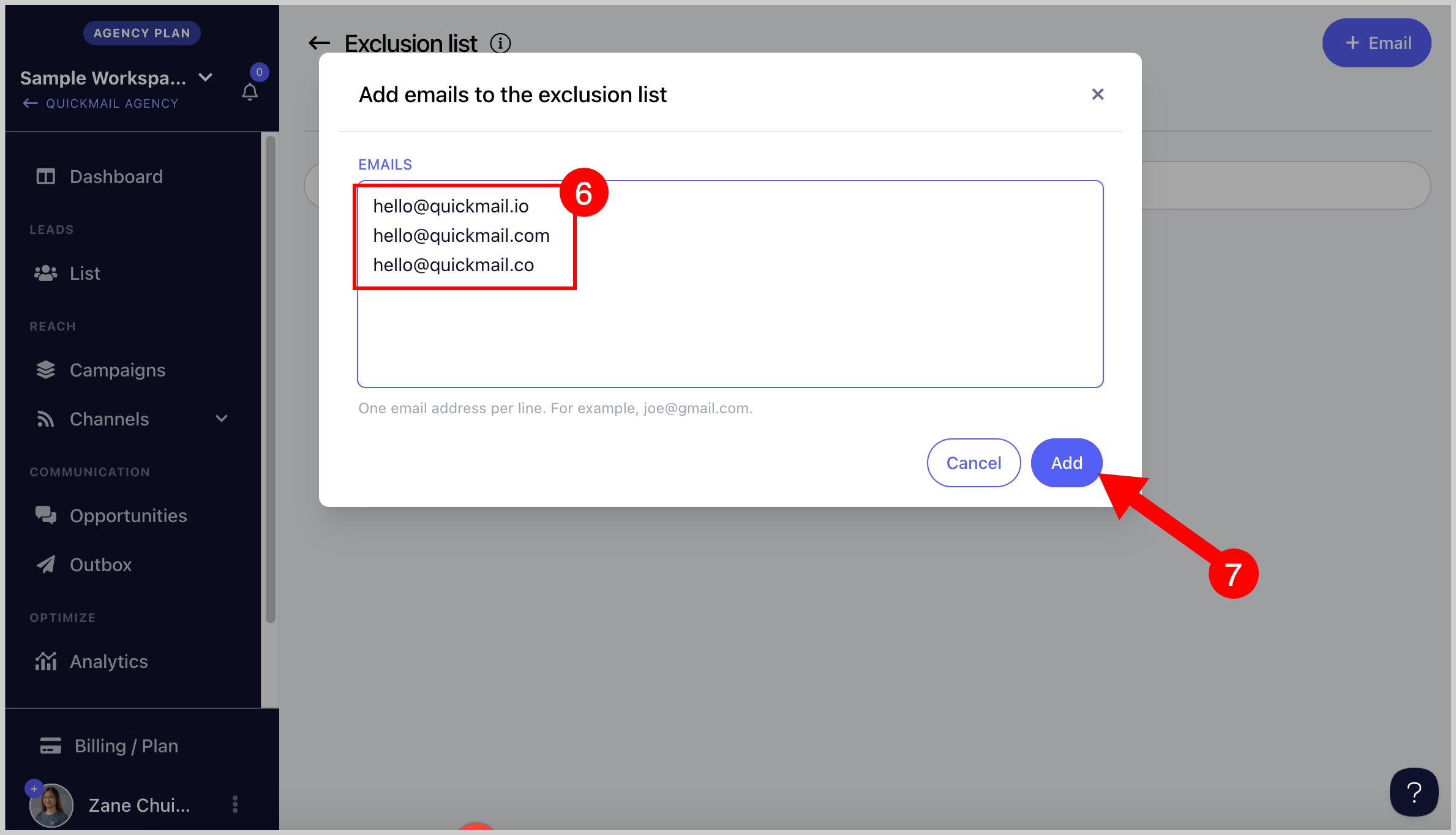 Step 3. Multiple emails can be added at a time by entering 1 email address per line → Finally, click "Add"