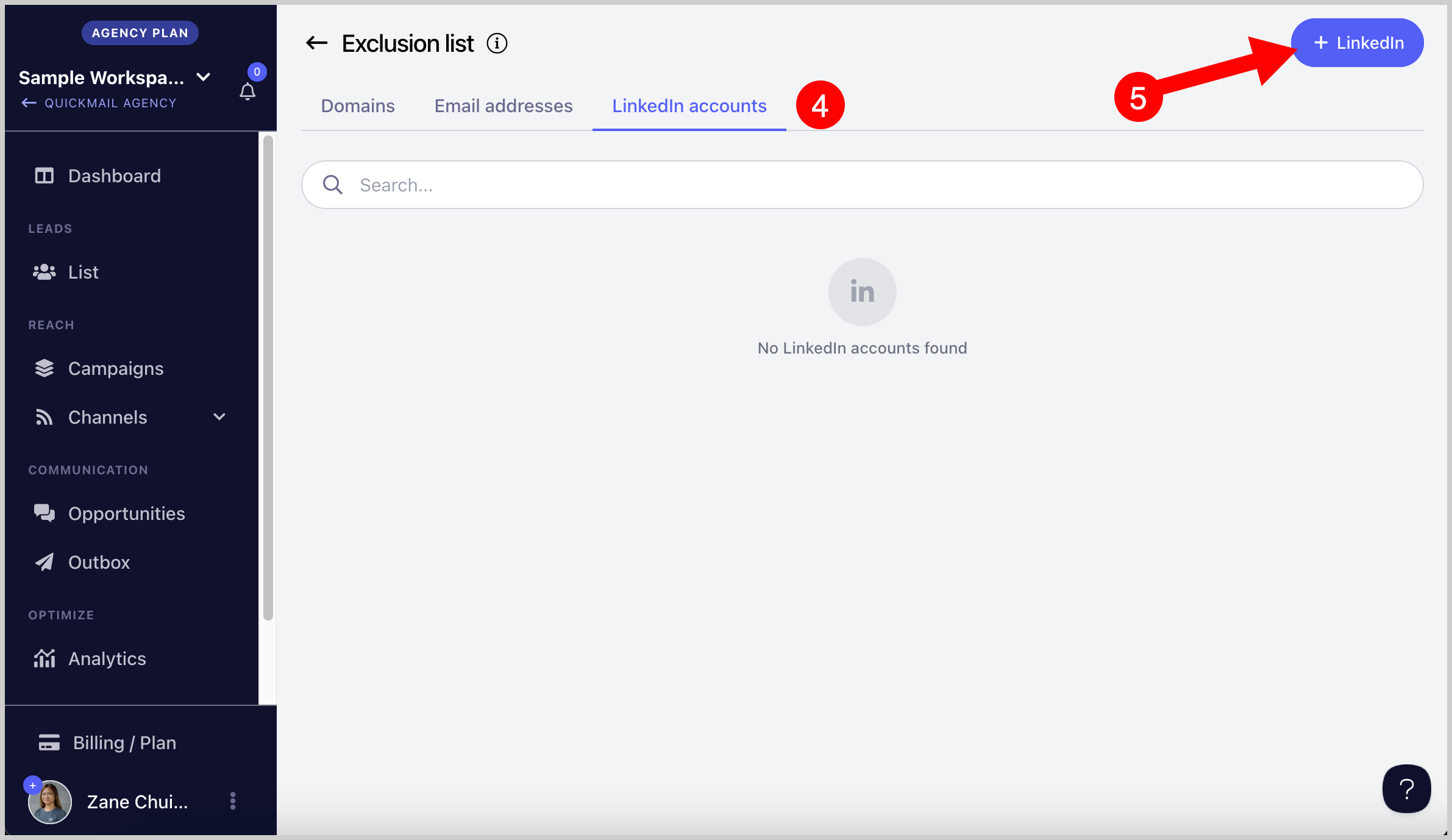 Step 2. Next, go to "LinkedIn" tab → click + LinkedIn