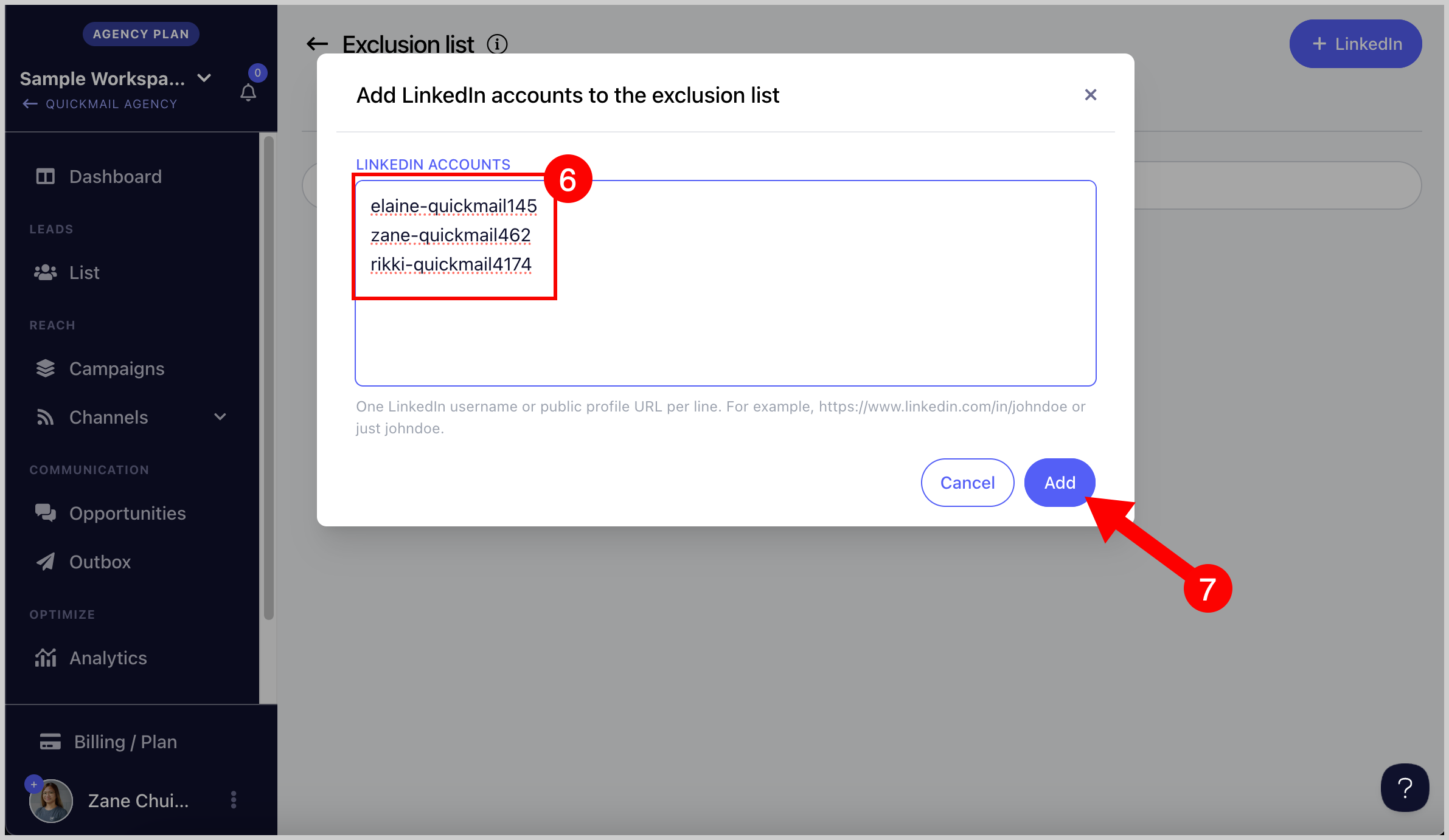Step 3. Add the LinkedIn profile IDs. You can enter multiple LinkedIn IDs, 1 profile ID per line → Finally, click "Add"