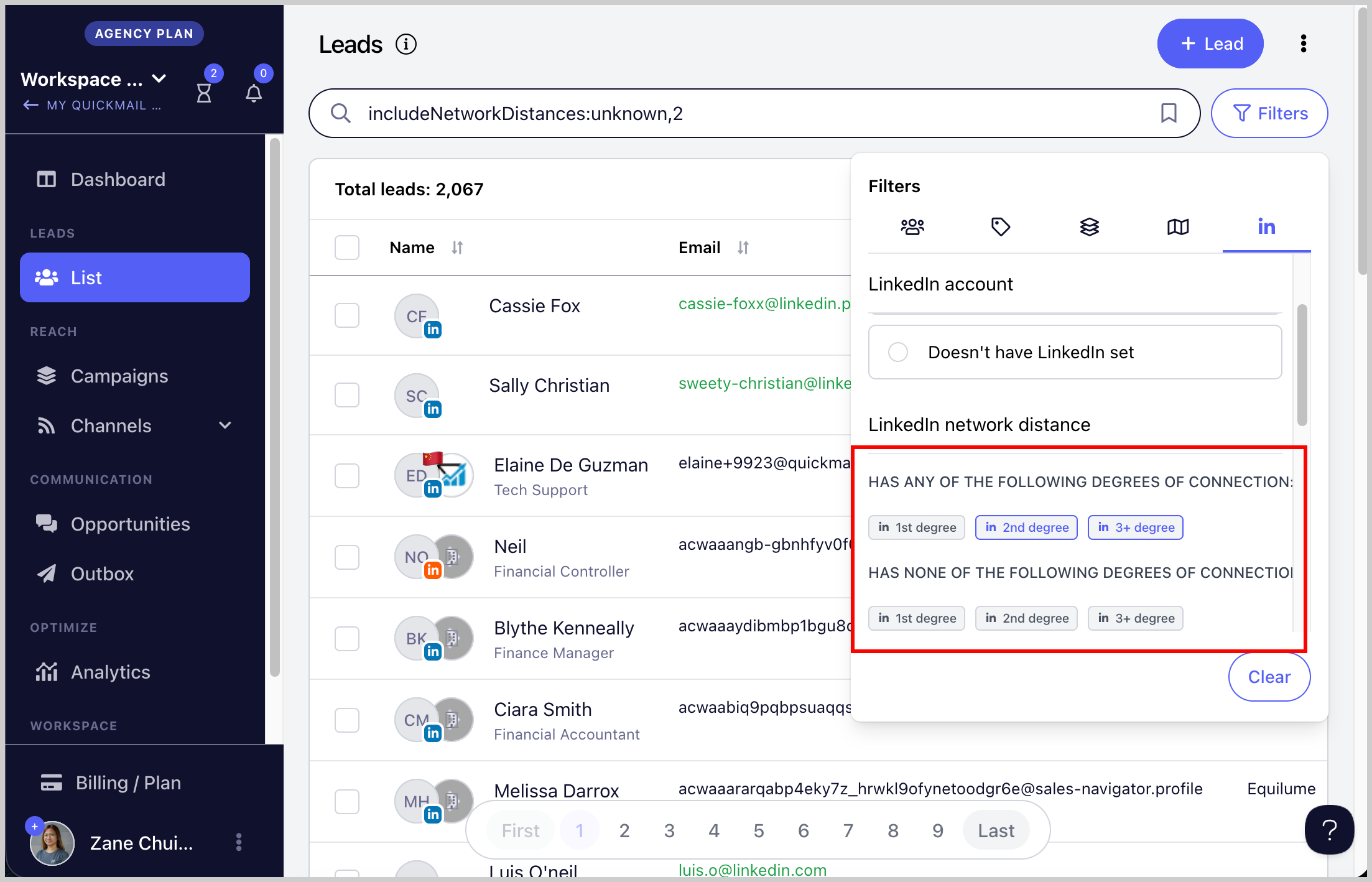 You can also see the LinkedIn network distance through the filters: