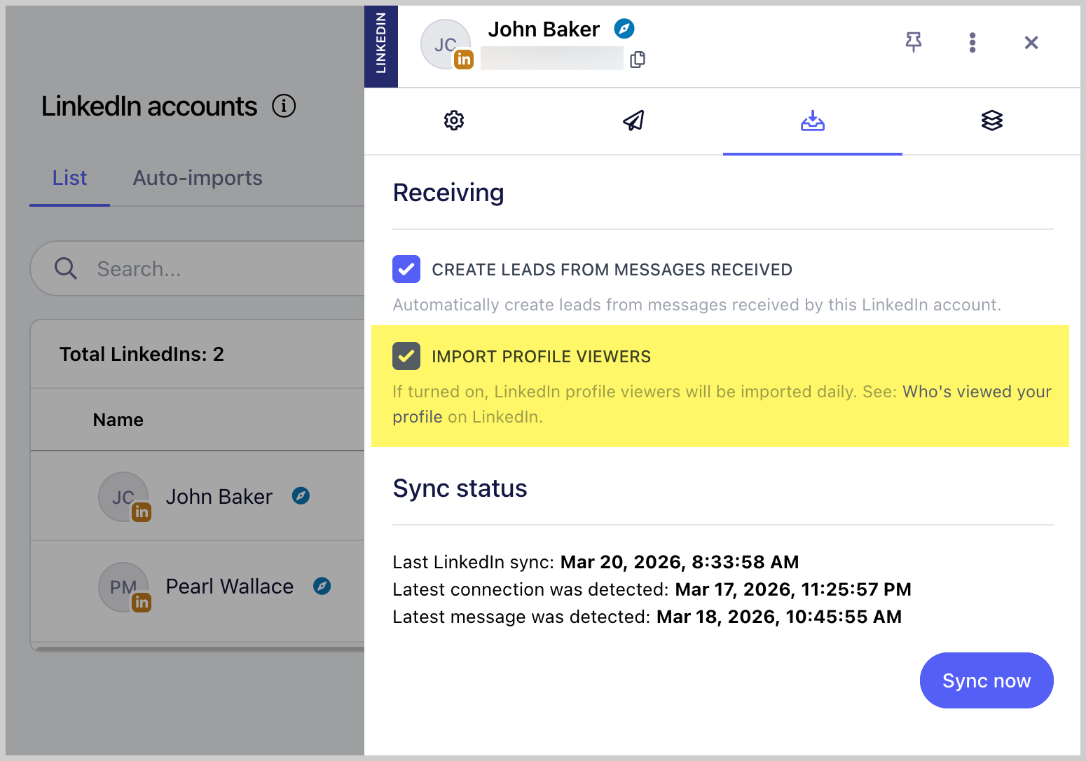 To do this, go to Channels β LinkedIn β Select a LinkedIn account β Receiving tab β Scroll down the page and press "Sync Now".