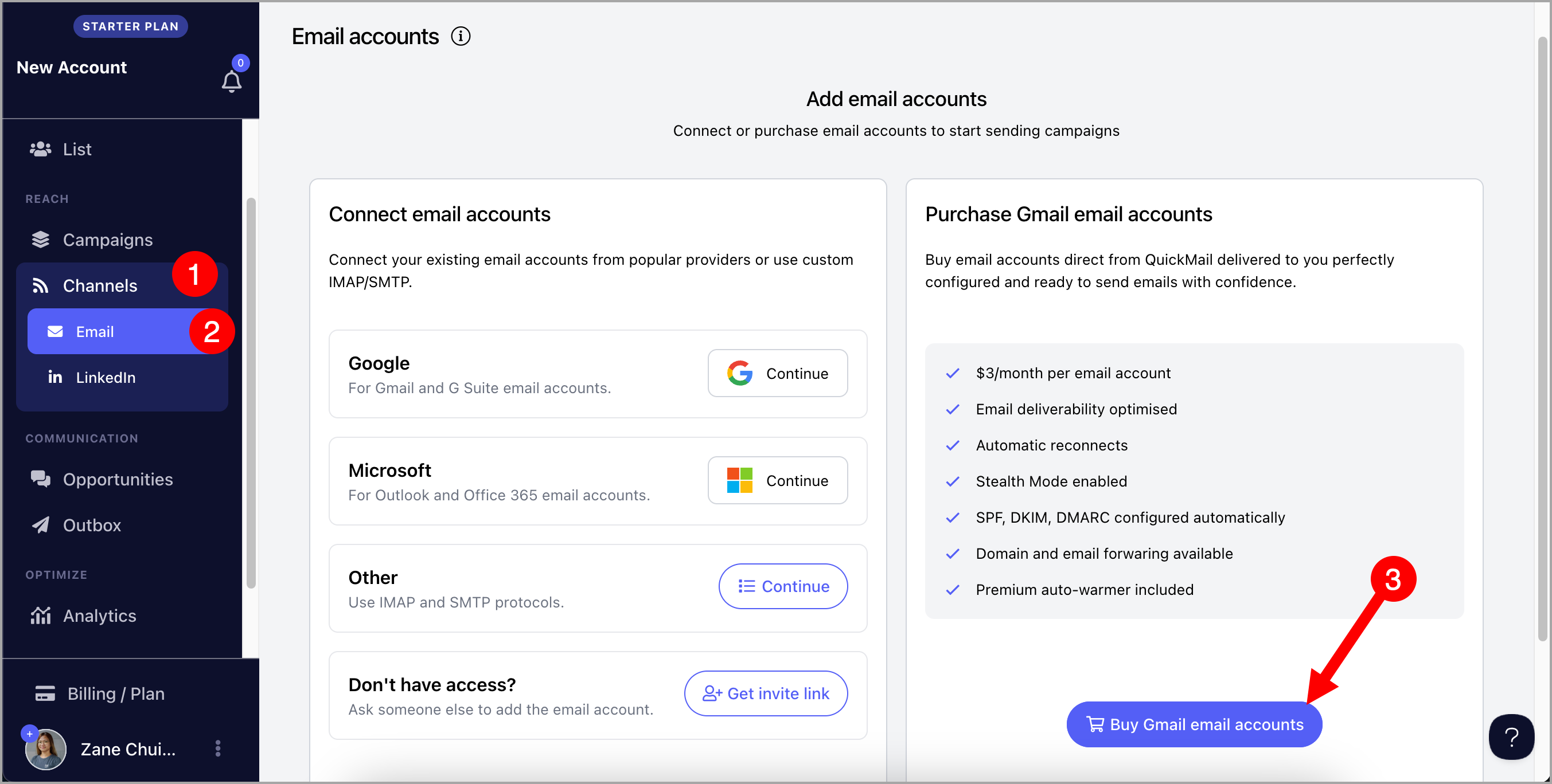 Step 2. Go to Channels → Email → Buy Gmail email accounts